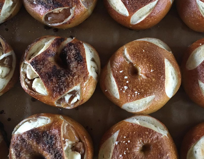 ドイツのプレッツェル生地に近い製法で作るベーグル。独特な風味とナチュラルな香ばしさ。もちっとしっとり食感で、噛めば噛むほど奥深い味わいが広がります。生地の配合や季節のフィリングなどの組み合わせで、多彩なベーグルが生み出されるのだとか。
