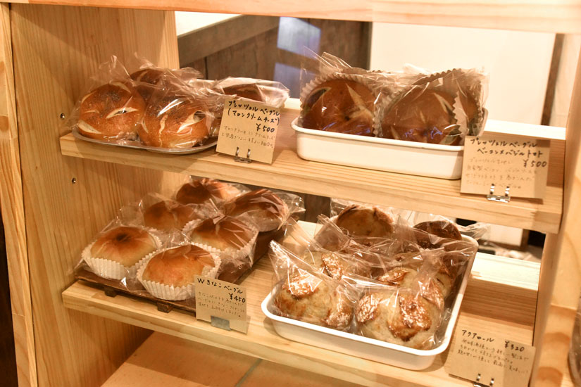 店頭では、常にアップデートをしているという多彩なレパートリーの中から、ベーグルを多めに毎回12~14種類ほどを販売。定番の食パン・プレーンベーグル・「neo牛乳パン」のほか、日替わりのパンが登場します。パンは各種類6個ほどを焼き上げ、売り切れ次第閉店となるため、早めの来店がおすすめ。