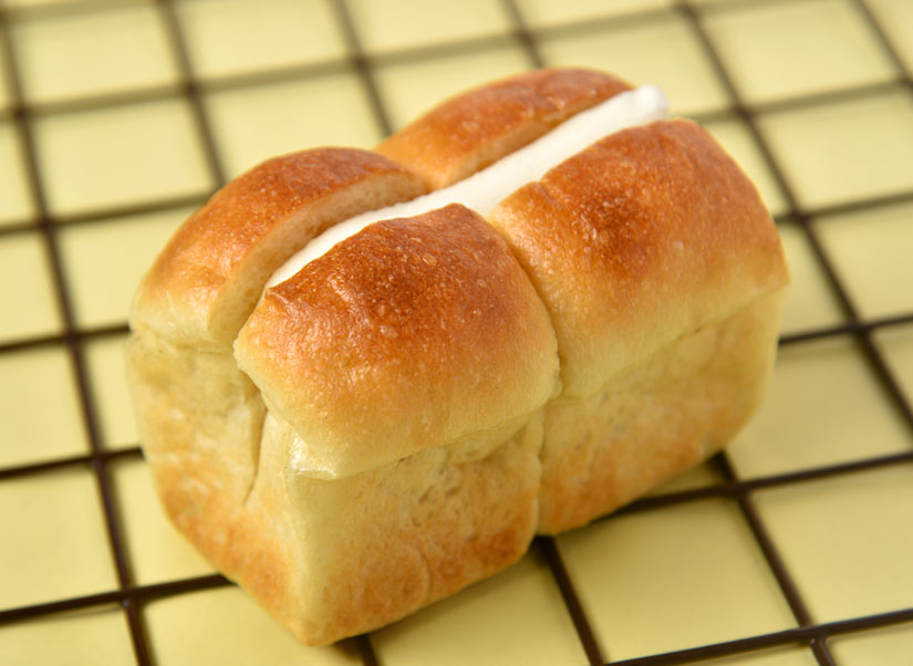 こちらも北海道産の希少小麦「キタノカオリ」を使用し、もっちりに仕上げた独自食感のクリームパンを楽しめます。マイルドは自家製カスタードは幅広い客層にも評判。