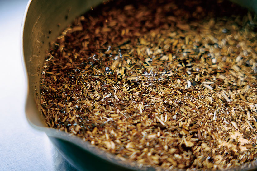 名人が安曇野や妙高で採ってきた黒文字を、約30分かけて弱火でじんわり煮出すことで、天然の芳香を丁寧に抽出。