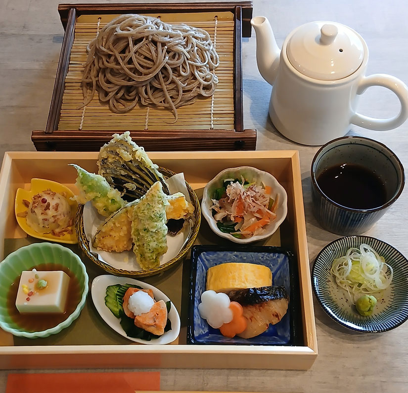 ランチには、蕎麦と和食の小鉢がセットになった、ランチタイム限定のお得なセットが味わえます。その日の仕入れや季節によって内容が変わるため、訪れるたびに違った組み合わせが楽しめるのも魅力。