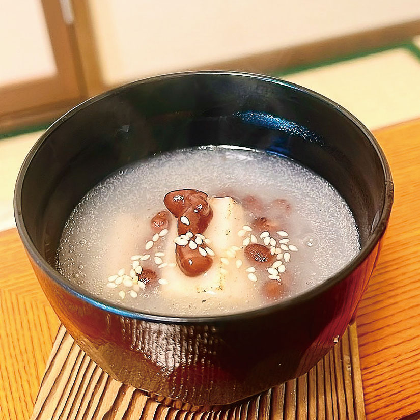 冬期(12月~2月)限定、そば湯を使ったやさしい味わいの「そばしるこ」(250円)。