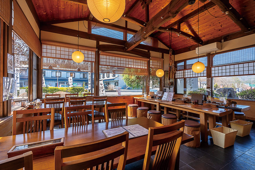 木の質感が心地よい趣のある店内。