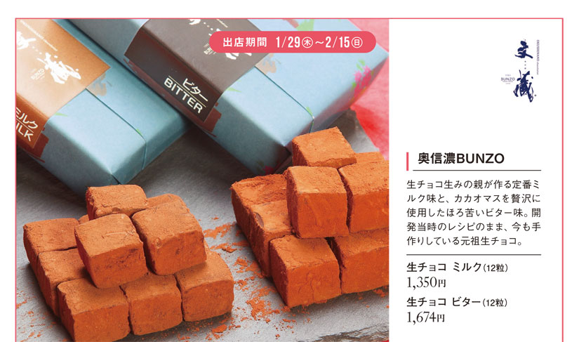 「奥信濃BUNZO(ブンゾー)」のこだわり生チョコも登場。
