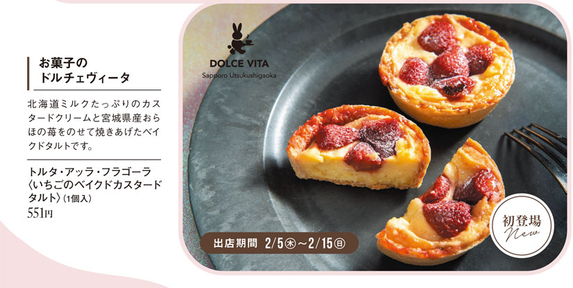 「お菓子のドルチェヴィータ」は自慢のタルトより「トルタ・アッラ・フラゴーラ〈いちごのベイクドカスタードタルト〉」が登場。