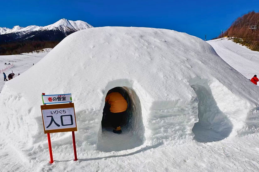 会場には5基のかまくらが登場。中には火が熾された七輪を設置。カラダを温めることができるほか、七輪で焼いた切り餅の振る舞いも行われます。