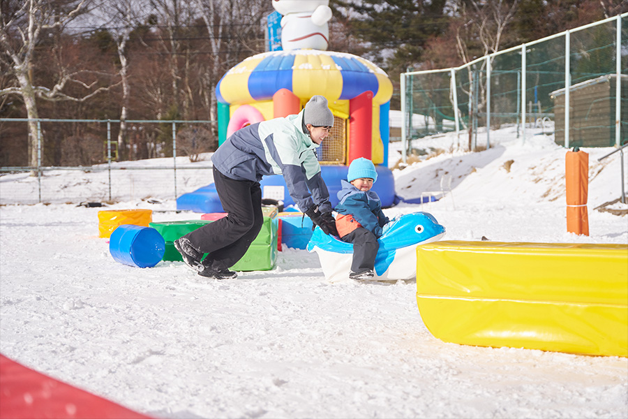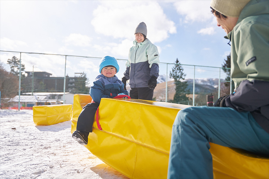 スキーやスノーボードをしなくても、雪の世界を思い切り楽しめるこのエリアは、子どもの雪遊びデビューにぴったりの場所です。