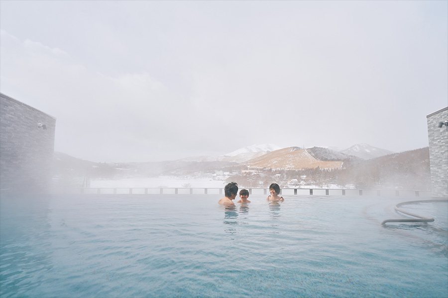 雪遊びで身体を動かした後は、ホテル内の「天然温泉 湖天の湯」で疲れを癒すことができます。