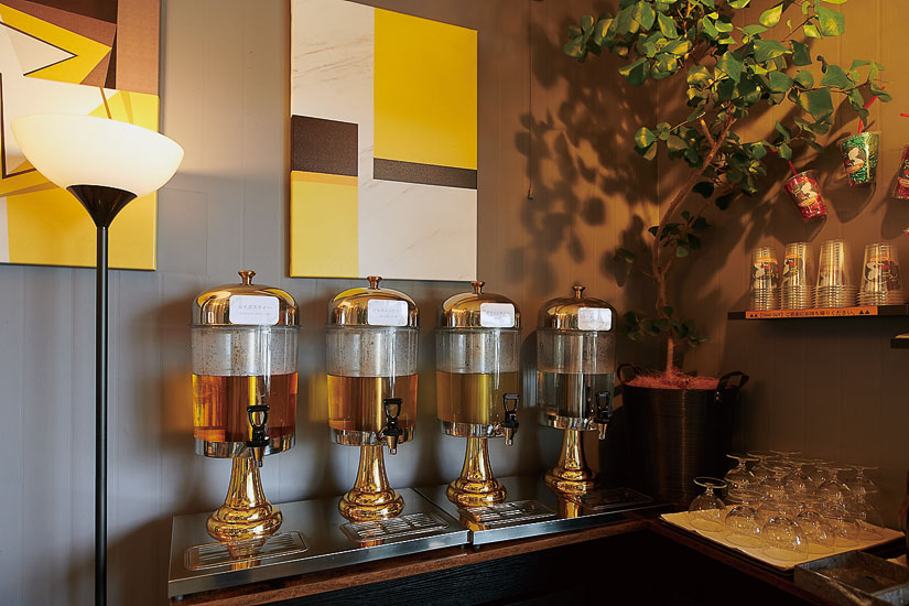 ルイボスティー、ジャスミンティーなどが自由に楽しめるフリードリンクを設置。