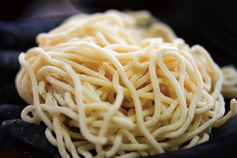 東京の製麺所「勝星製麺」から仕入れた、加水率44%を誇る超多加水熟成麺を特注で使用。