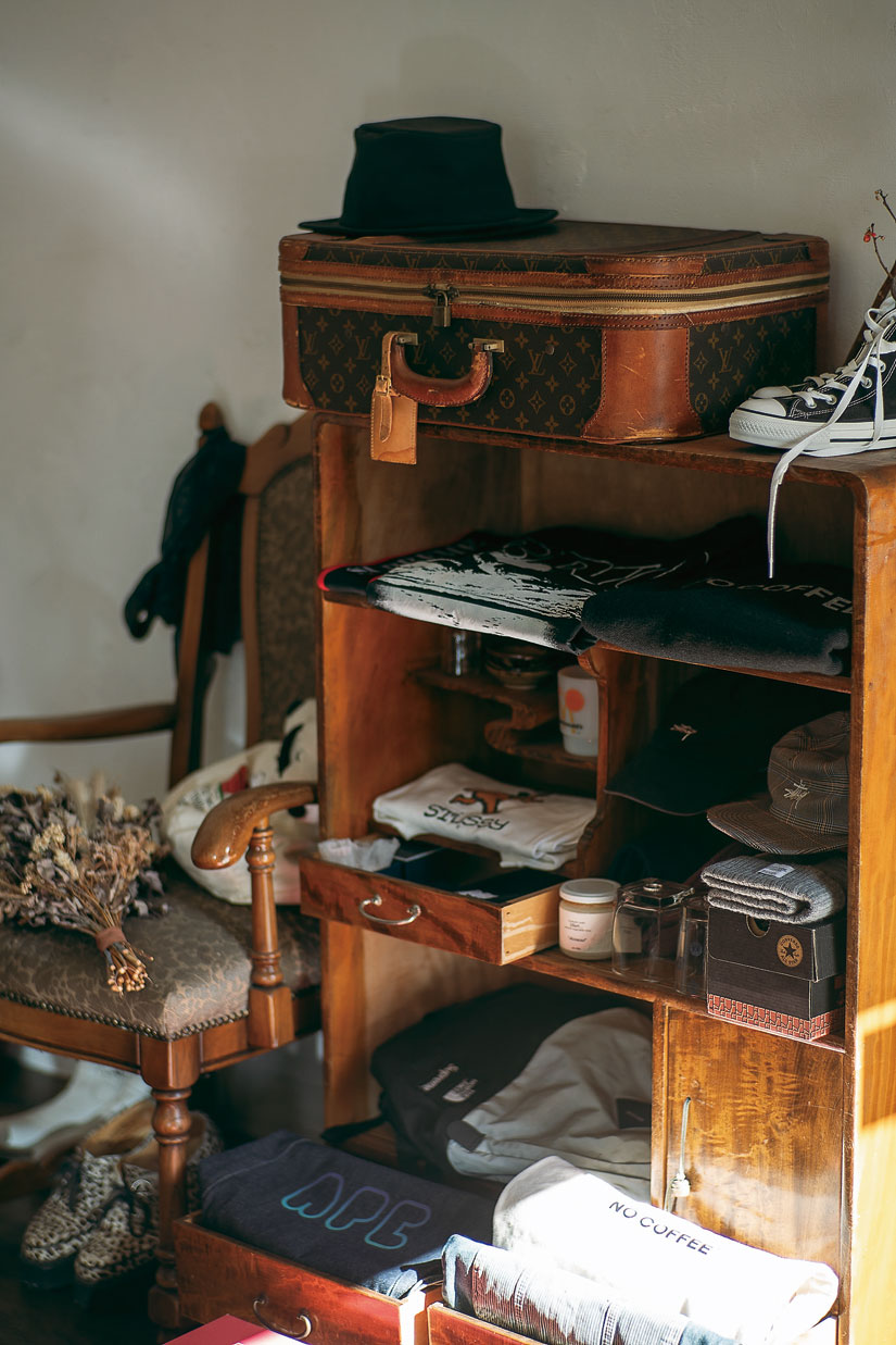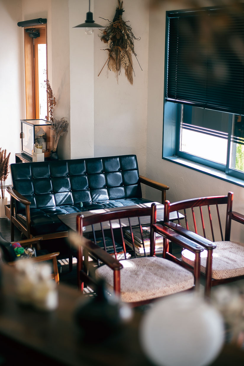 渋いヴィンテージ家具で締めるのがナナさん流。