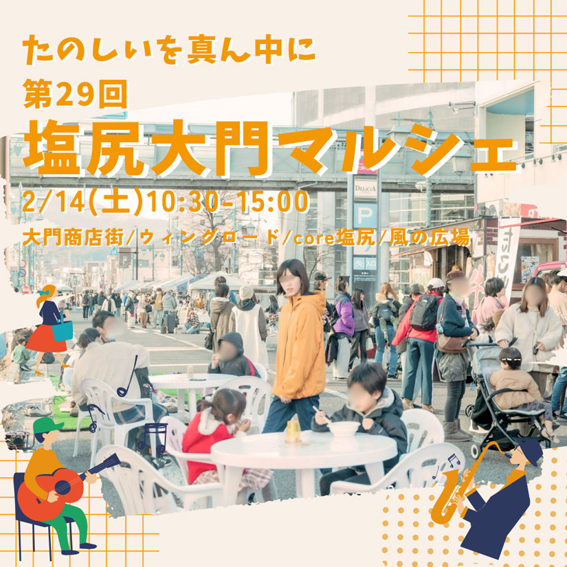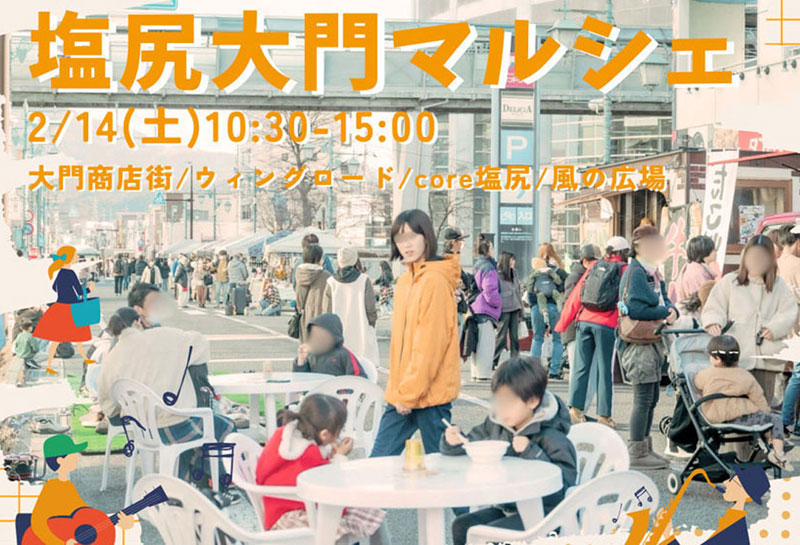 長野県の塩尻駅近くの大門商店街(歩行者天国/えんぱーくテラス・ウィングロード・core塩尻)で、人気イベント『第29回 大門マルシェ』が、2026年2月14日(土)に開催。