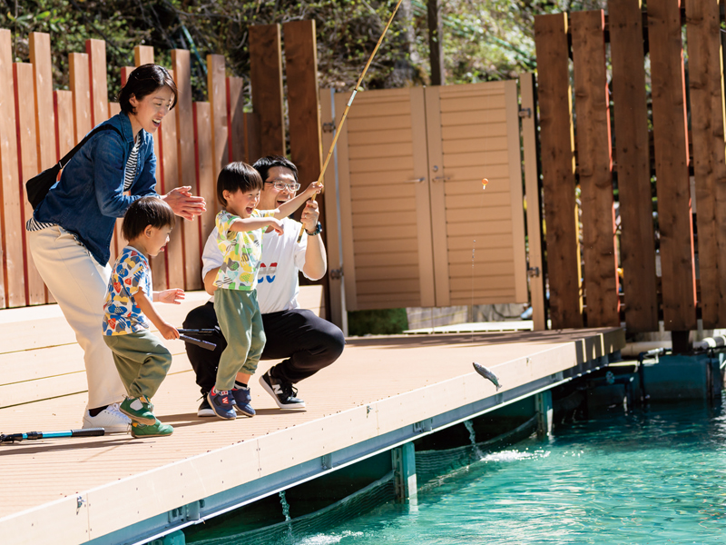滝の湯川の清流を活かした「蓼科フィッシングパーク」は、手ぶらで気軽にイワナやニジマス釣りが楽しめるスポット。初心者や子供でも挑戦しやすく、釣り上げた魚を夕食時に炭火焼きにして味わう体験は格別です。
