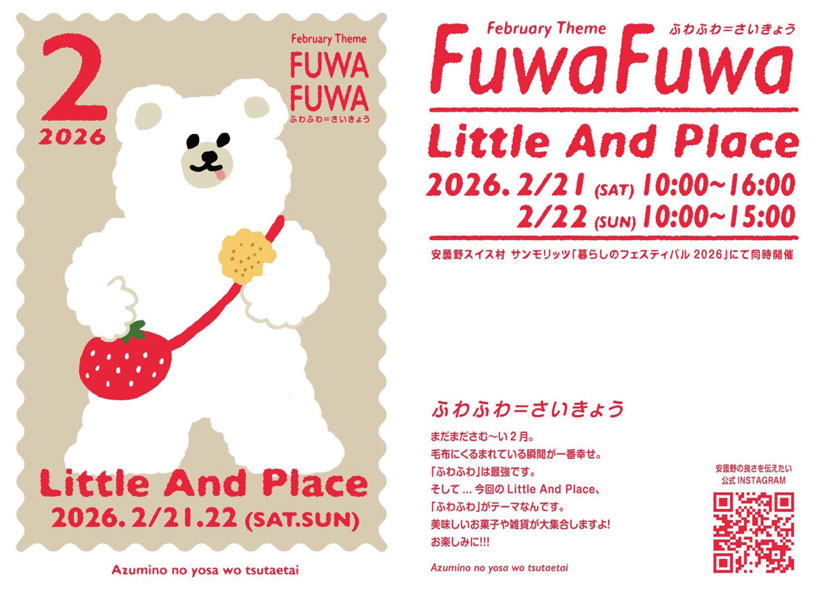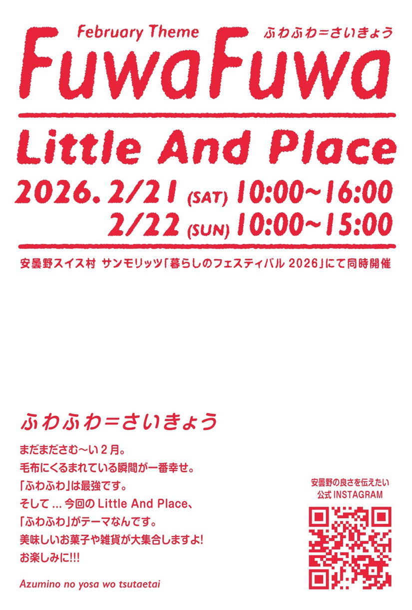 長野県安曇野市の「安曇野スイス村 サンモリッツ」で、屋内マルシェイベント『Little And place(リトルアンドプレイス)』が、2026年2月21日(土)・22日(日)に行われます。今年も『暮らしのフェスティバル2026』との同時開催。