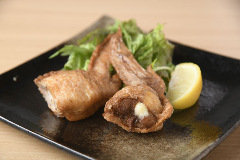 若鶏の手羽先の骨を丁寧に抜き、国産野菜と肉を詰めてジューシーに。ビールにもハイボールにもよく合い、気づけば追加注文している一皿。