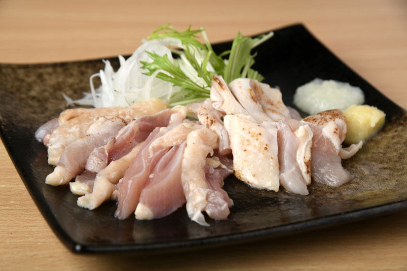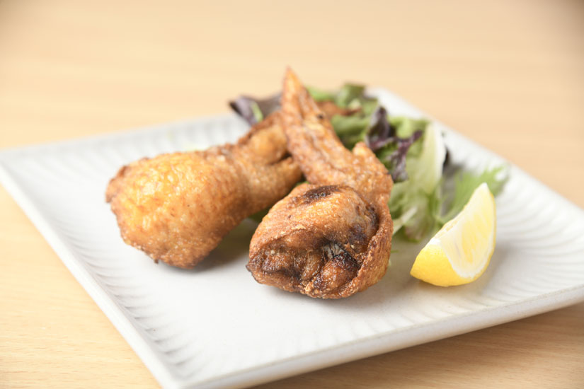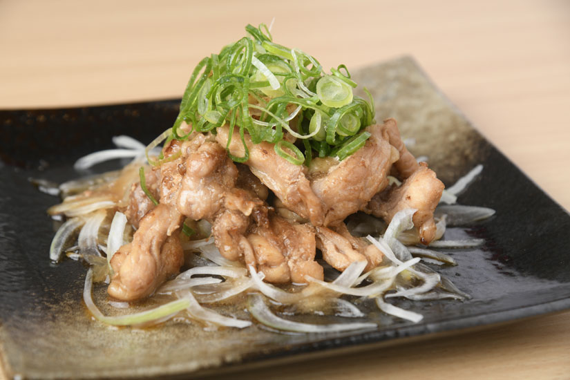モモとムネ、2つの部位を食べ比べ。鮮度が命の一品で、九州定番の甘口醤油が素材の甘みを引き立てます。