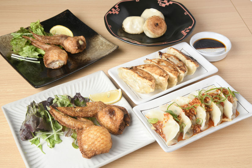 焼き餃子、水餃子、包子、手羽餃子。それぞれ皮・餡・仕上げを変えた完全な別レシピで、食感も風味もまったく異なります。どれから手を伸ばすか、自然と会話が生まれるのもこの店ならでは。
