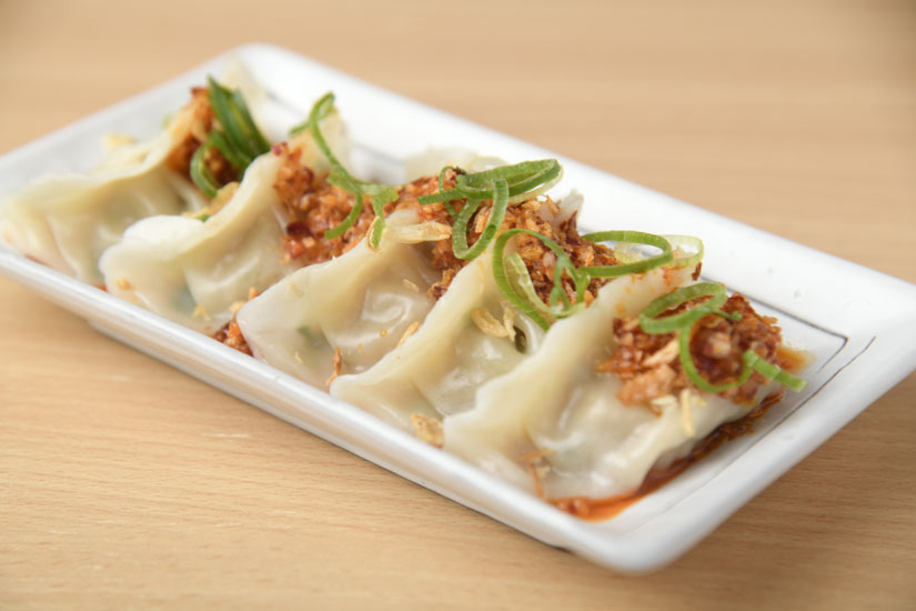 もっちり厚めの皮に、香味ラー油のコク。揚げネギとニンニクのカリッとした食感がアクセントになり、後引くおいしさです。