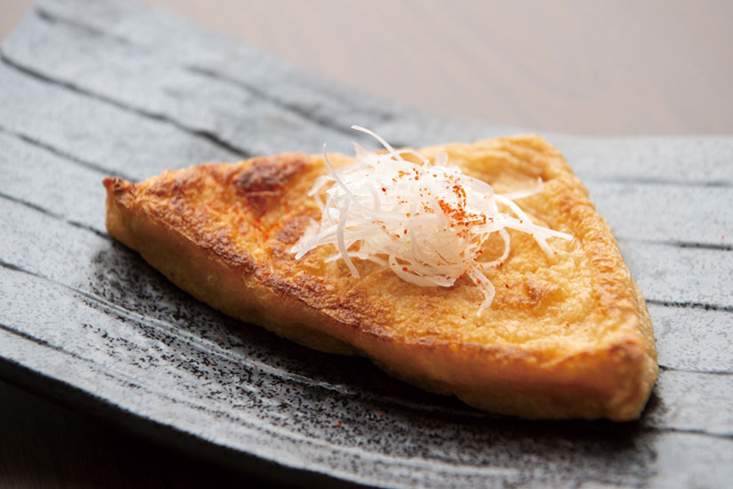 国産大豆油で一枚ずつ丁寧に揚げた油揚げは、中がふわふわと柔らかい素材の味が楽しめる逸品。