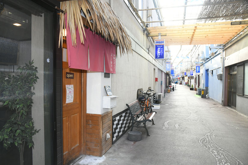 昭和を感じるノスタルジックな大町名店街の東側入口すぐ。駐車場は大町商店街東側入口から道を挟んですぐの大町市営東町駐車場が無料で利用できます。