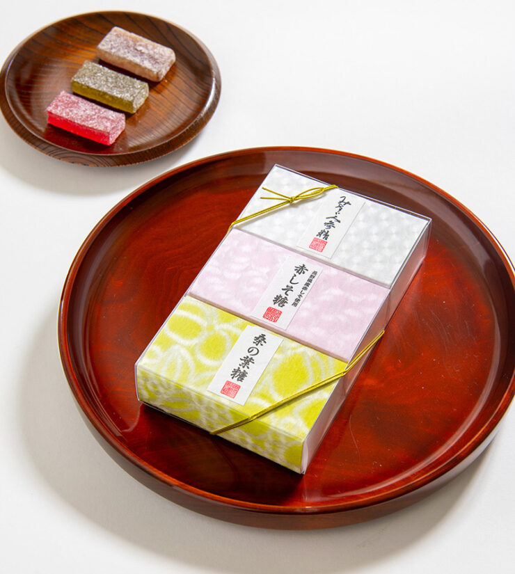 ★詰め合わせ商品は3点の中から選択。人参糖8粒 790円、赤しそ糖8粒 570円、桑の葉糖8粒 570円、クリアケース代 50円。