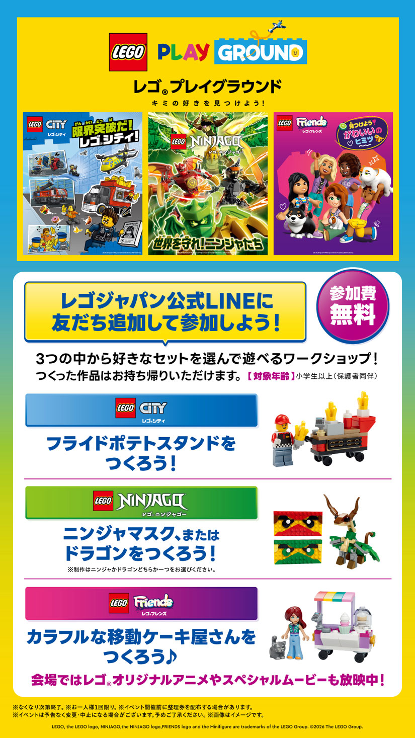 ・レゴジャパン公式LINEアカウントの友だち追加に関しては当日スタッフまで問い合わせください。