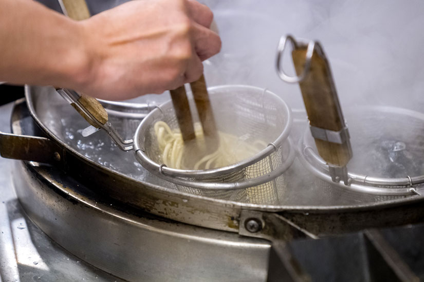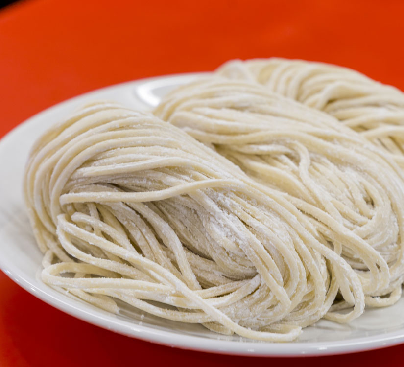 松代町にある製麺所でつくる自家製麺は、長野県産・北海道産の小麦を3種類ブレンド。スープに合うよう密度を高くした中太麺。