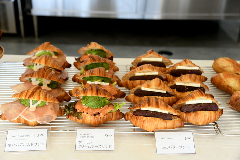 サンド系は、具材がはみ出すほどのボリューム感。「サーモンクリームチーズサンド」(560円)、「生ハムとアボカドサンド」(520円)などの総菜系は、ランチにもピッタリな定番人気。自家製のハムやソーセージといった本格的なシャルキュトリーをあわせたサンドも開発中。