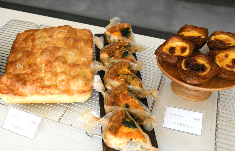 看板商品の「クロワッサン」をはじめ、具だくさんの総菜が入ったクロワッサンサンド、多加水仕込みでもちもち食感のフォカッチャ、定番のブリオッシュ、さらには「ブクタン Galette et Café」でも人気のクロワッサン生地を使ったキッシュもあります。