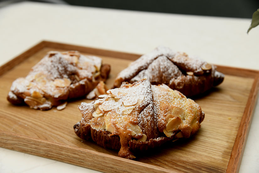 北海道産の発酵バターを100%使用。生地を配合し寝かせ焼き上げるまでに3日間ほどかかるクロワッサンは、表面はサクサク、中はふっくらもっちり感もある唯一無二の味わい。かじると香ばしさが広がり、後からバターの良い風味が追ってきます。1日に約100個を焼き上げますが、午前中で売り切れるほどの人気ぶり。