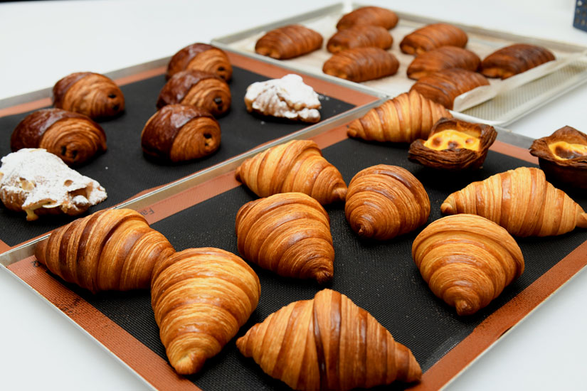 クロワッサン生地をさらに折り重ね、きめの細かく美しい縞模様に仕上げる「パンスイス」。ザクパリッとした独自食感を楽しめます。中にはカスタードとチョコチップが入っていて、豊かな風味も甘すぎず生地とのバランスも絶妙。