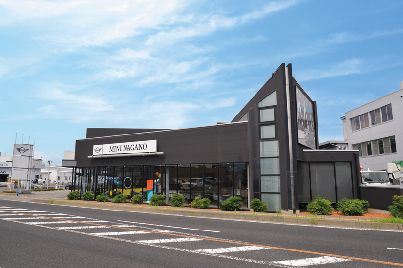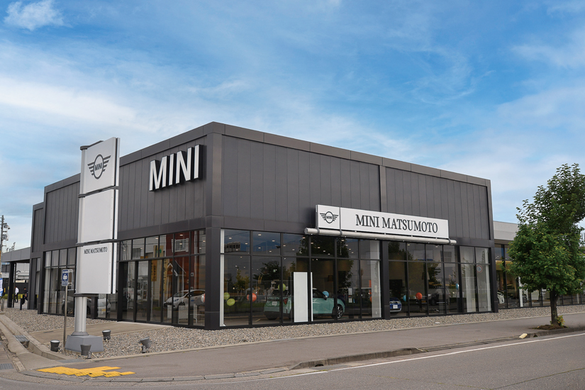 MINI松本ショールームは松本市村井下町北交差点からすぐ。松本BMWショールームと併設。