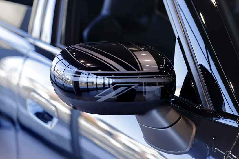 さらに細部にまでこだわりが光ります。ボンネットには「ブラック・スポーツ・ストライプ」、サイドミラーにはユニオンジャックをモチーフにした「ヘリテージ・ミラー・キャップ」が施され、よりスポーティーさを演出しています。