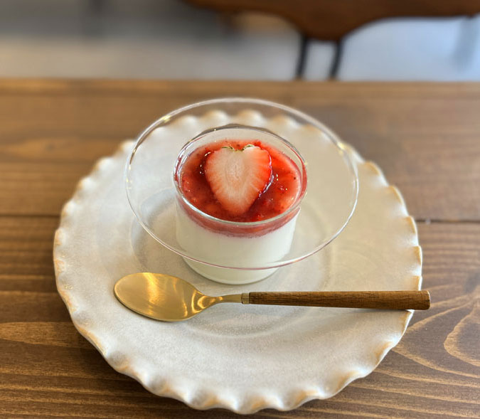 画像は苺ソースといただくパンナコッタ。
