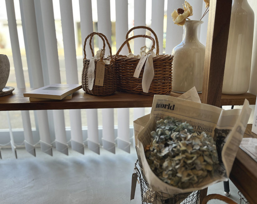 戸谷さんのセンスがあふれるセレクトショップには、器や衣類、服飾小物、ドライフラワーなどの生活を豊かにする雑貨がそろいます。