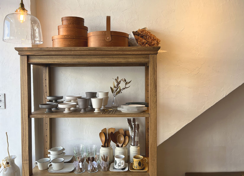 「忙しない日々を過ごす方たちがふと立ち寄れる、カフェと雑貨をかけ合わせた空間を提供したいという想いから開業を決意しました。〈見て・選んで・味わう〉ことを楽しんでいただけたらと思っています。雑貨は、本当に良いものをさりげなく日常に取り入れていただけるよう、長く愛される品質とデザインを大切に厳選しています」と戸谷さん。