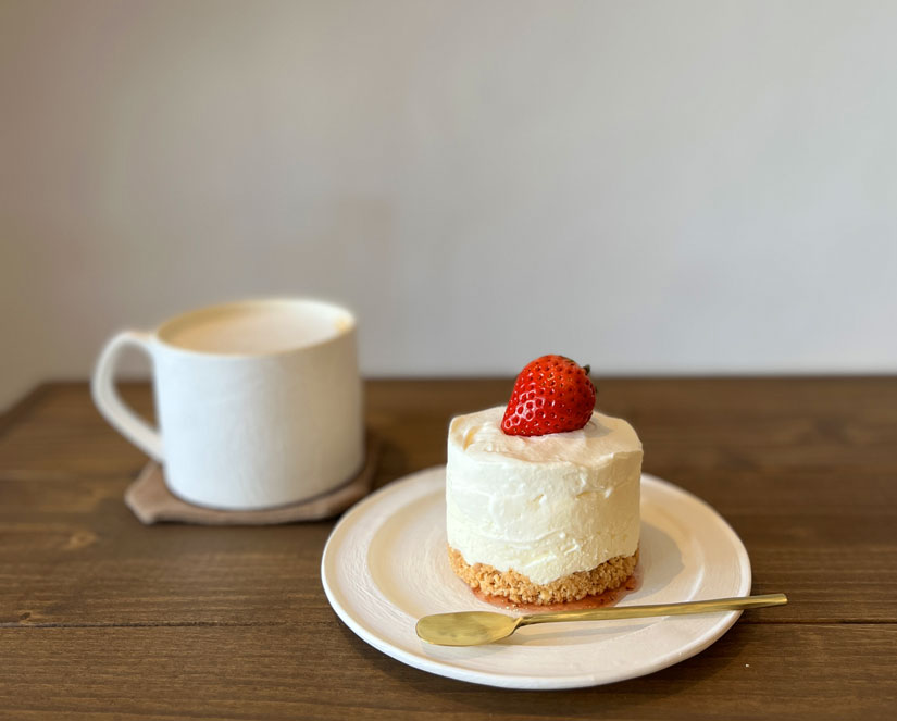 コクのあるチーズケーキに、自家製の甘酸っぱい苺ソースとサクとしたボトム生地がアクセントになったスイーツは、濃厚なのに後味がさっぱり。大きめサイズ感もうれしいポイントです。