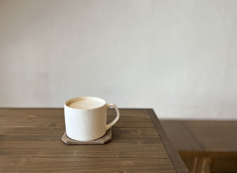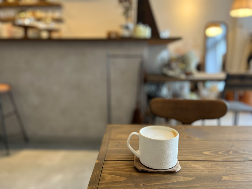 ドリンクはコーヒー・紅茶・ジュース(各500円)に加え、多彩なラテ系メニュー(550円~)を用意。珈琲豆は上田市の「TORTOISE COFFEE」に依頼したオリジナルブレンドを使用しています。スイーツやランチでは+料金でラテメニューもセット可能。画像はカフェラテ。コーヒーの苦味とコクを感じられる美味しい一杯でした。