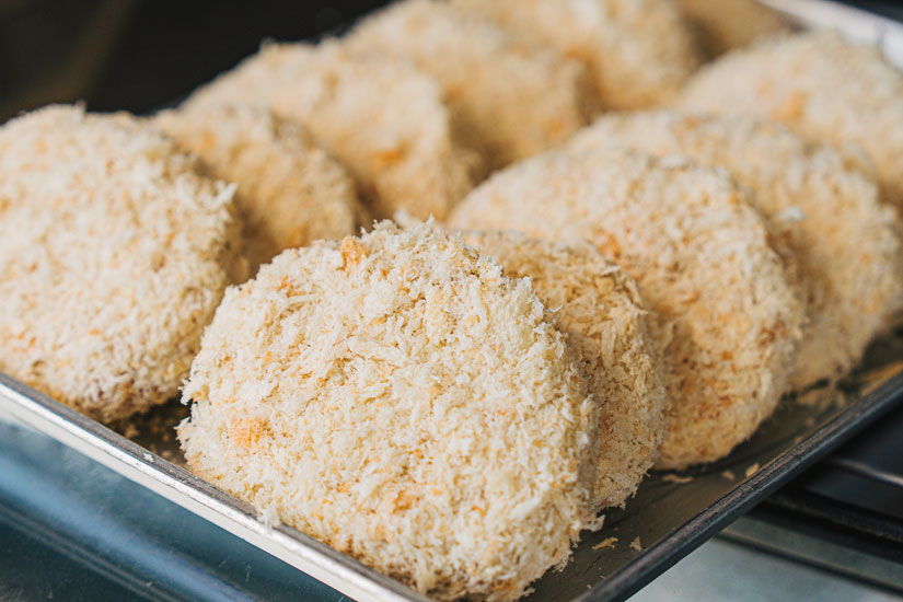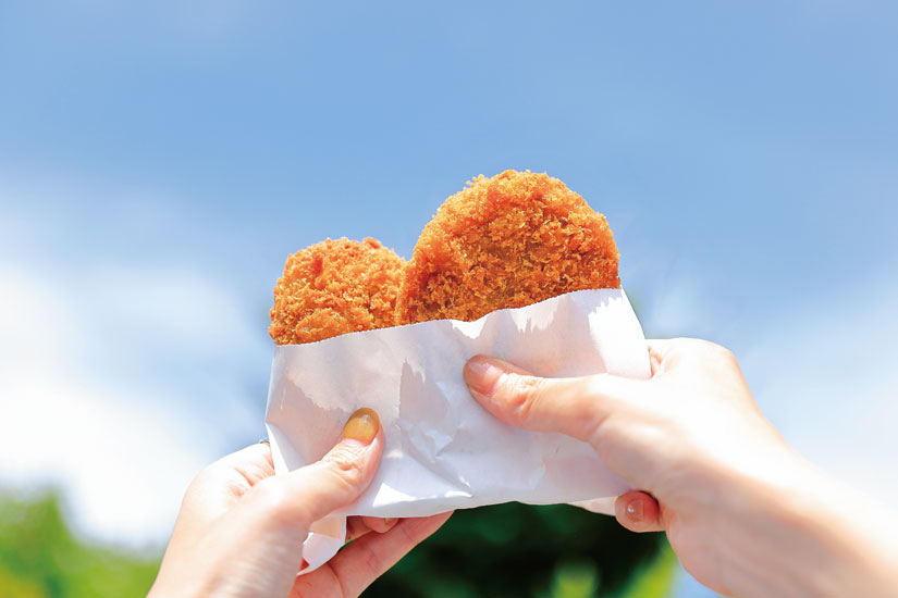 旨味が詰まった濃厚なコロッケ。このほかにカレー、かぼちゃ、コーン、クリームコロッケがそろい、種類豊富。