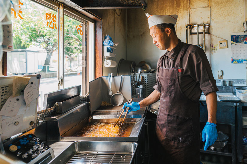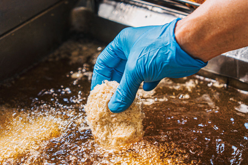 一つひとつ丁寧に仕込み、たっぷりの油でじっくりと揚げる。変わらない手仕事が、地元に愛される味を作ります。