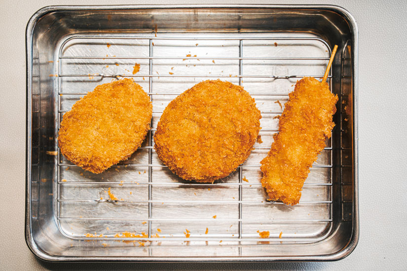 店主のおすすめはメンチカツとやわらかい「ササミカツ」(100g・250円)