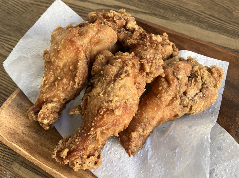 もうひとつのメニューが、骨付き手羽元を使用したフライドチキン。「骨付きだと味に深みが出るから」と骨付きにこだわったそう。スパイスは5種類以上を独自に合わせたオリジナルブレンドを使用。「がぶりと豪快に楽しく食べてほしい。楽しい時間につながるように工夫しました」とオーナー・伝田さん。
