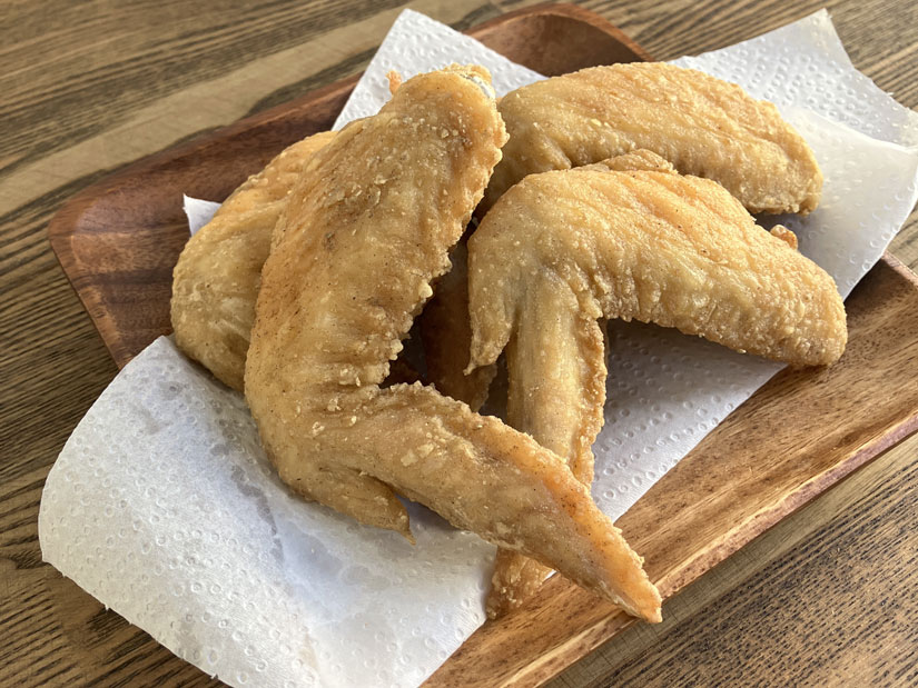 塩コショウのみのシンプルな味付けで提供。テイクアウトで夕飯のおかずとしても重宝しそう。