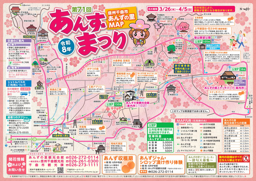 2026年3月26日(木)から4月5日(日)に、長野県千曲市で『第71回あんずまつり』が開催。日本有数のアンズの産地として知られ、”一目十万本のあんずの里”と言われている森・倉科地区で、毎年恒例となるお花見イベントです。開催に合わせて、会場周辺の飲食店・売店ではアンズを使ったスイーツやジャム・ジュースなどの加工品のほか、おやきや草もちなども販売される予定。お花見を楽しみながら、地元の味を堪能してみて。
