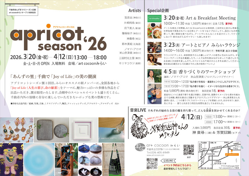 ◎art cocoonみらいオープン3周年記念「apricot season’26」展
