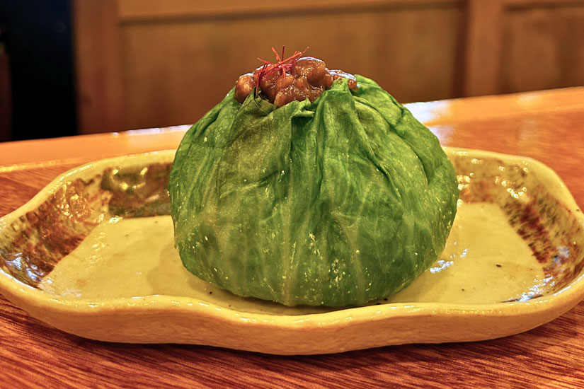渡邊さんのおすすめは「そぼろルーローむすび」。ルーローハンから着想を得てレシピづくりし、五香粉や八角など本場のスパイスを使って甘辛く煮たそぼろが魅力の一品。海苔ではなくレタスで巻いているのも特徴で、シャキッとした食感も楽しめます。