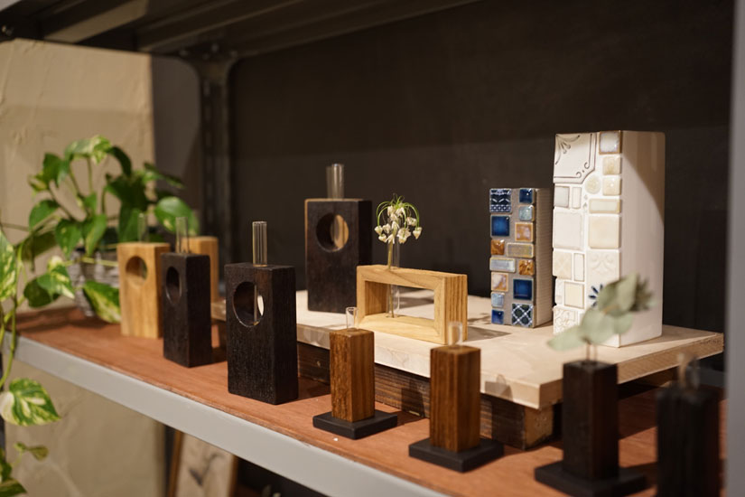 木製の一輪挿しなども揃います。