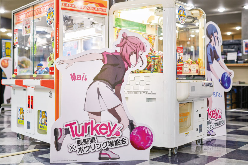 長野県千曲市を舞台に5人のボウリング女子高校生部員が繰り広げるアニメ「Turkey!」。部員たちが活動するボウリング場のモデルとなった、創業54年の歴史ある老舗「アピナボウル 長野篠ノ井店」は千曲市のお隣の長野市にあります。明るく広々とした店内には全32レーンを完備。すべてガターなしレーンに対応しているため子どもと一緒に楽しめます。