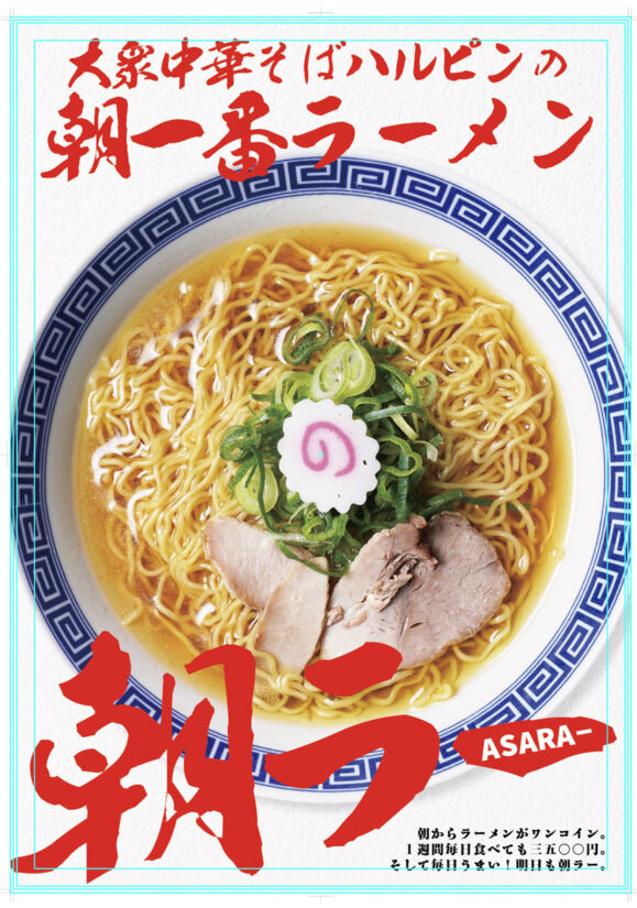 オープンから10時までの朝限定で、「ハルピンあさラーメン」を500円で提供。