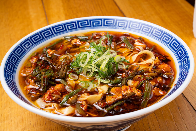豪快に辛ウマに炒め上げ、独特の辛みとコクが感じられる青唐と、さまざまな食感が楽しめる数種類の山菜が入ったラーメン。青唐辛子の旨み・辛味がピリッと効いていて目覚めの一杯におすすめ。